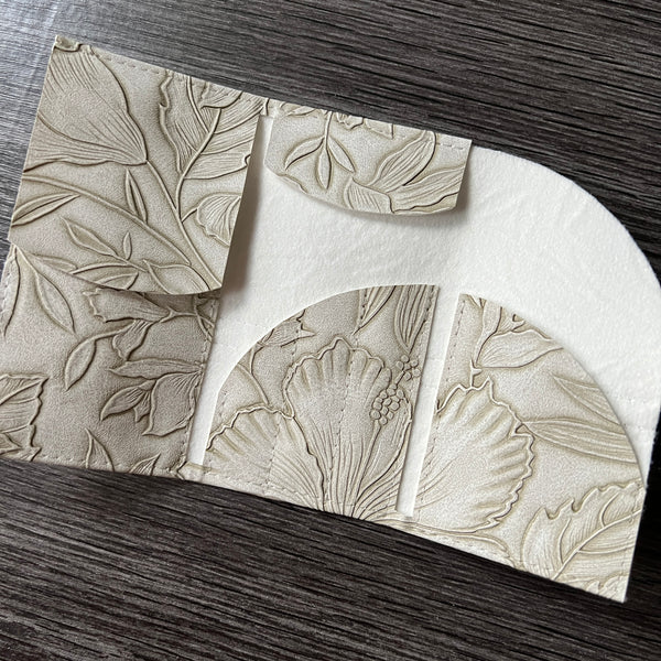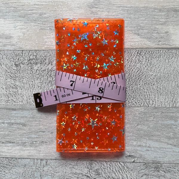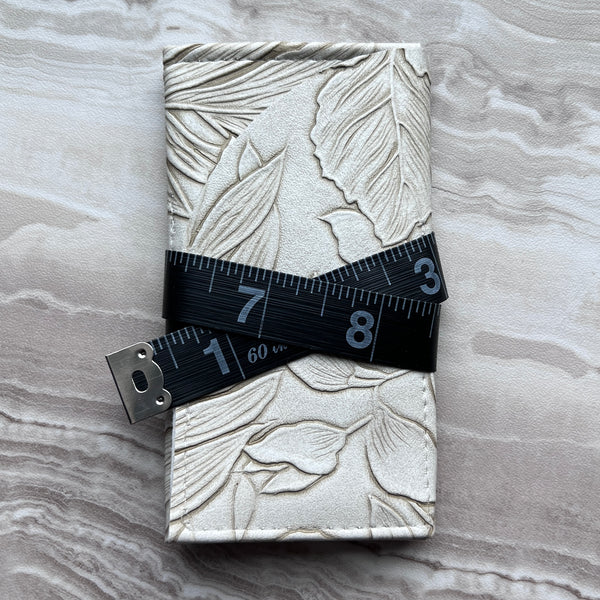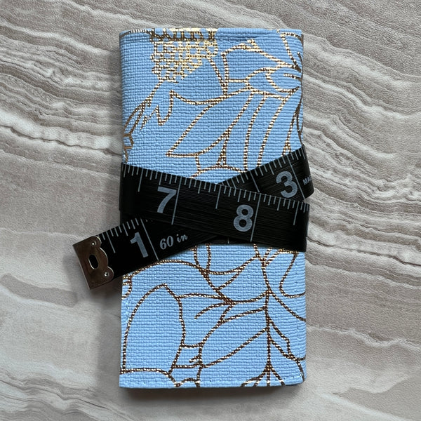 The perfect holder to keep all of your commonly used notions safe and ready to use in your project bag! These tri-fold holders easily hold stitch markers, a small pair of scissors, tapestry & cable needles and stitch fixers. The holders are wrapped with a 19" tape measure which can be used to measure different parts of your project. Small & compact but versatile!