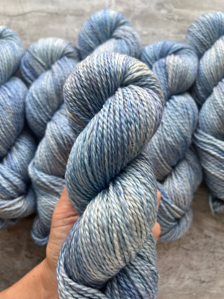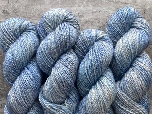 Hand-dyed with care in small batches. Yarn is thoroughly washed multiple times, but some light bleeding may occur during the first wash. Dyelots may vary slightly. Please be sure to purchase enough to finish your project and/or alternate two or more skeins while making to ensure even color distribution. Photos are meant to be as true of a representation of the yarn as possible, but there may be slight differences due to monitor settings, etc.